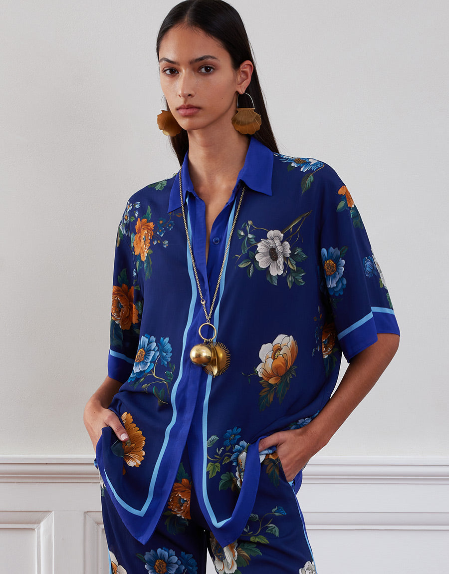 Akari Crepe Shirt - Magical Blossom Navy