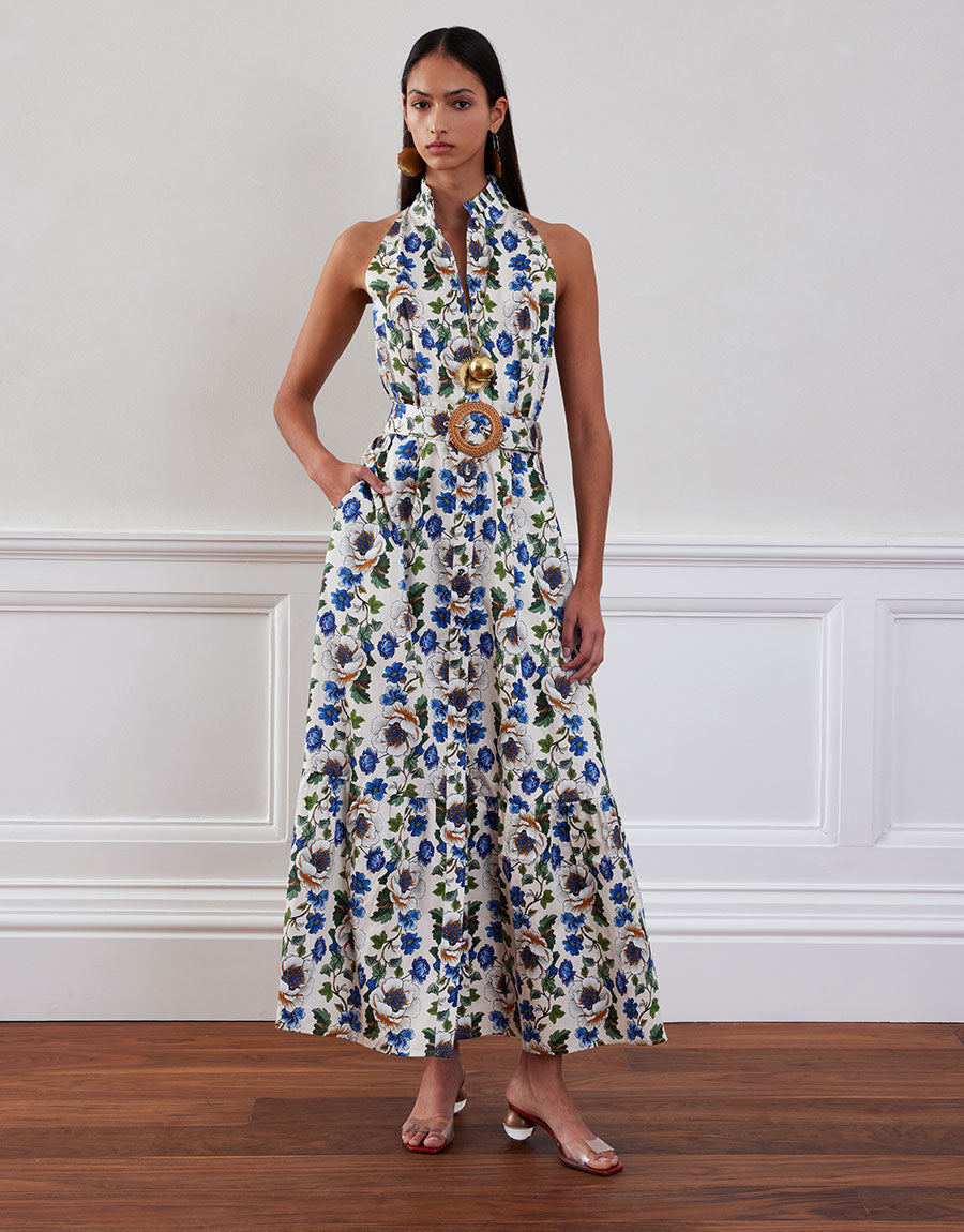 A feel-good shirt dress that flatters every time. Biba features a ruffled high collar, cinched elastic waist, wicker-inspired buckle and pockets — effortless elegance with ease. In our Vine Floral print of soft greens and blues, it delivers maximum impact with minimal effort.